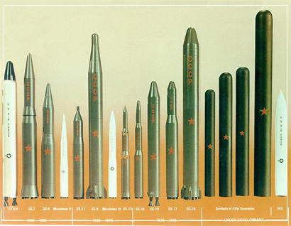 Muestra de los diferentes misiles intercontinentales de las dos potencias