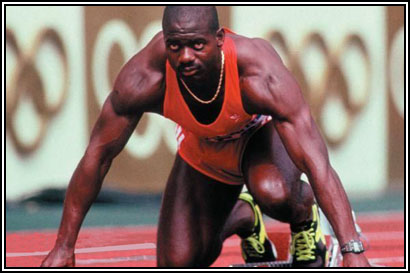 Ben Johnson antes de tomar la salida en los 100 metros lisos