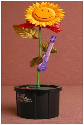 De flor tenía únicamente la forma, era de plástico y cuando se ponía música, la muy cachonda comenzaba a bailar para el disfrute de toda la familia, en especial los abuelos, que veían aquello como un adelanto de la tecnología digna de cualquier novela de Isaac Asimov.