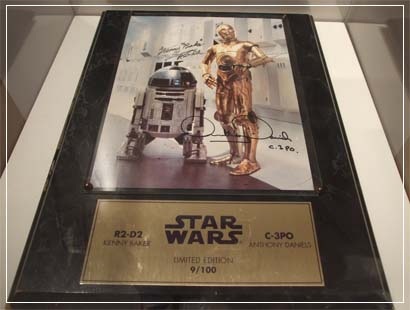 Cartel edición limitada de Star Wars firmado por los actores que daban vida a C3PO y a R2D2