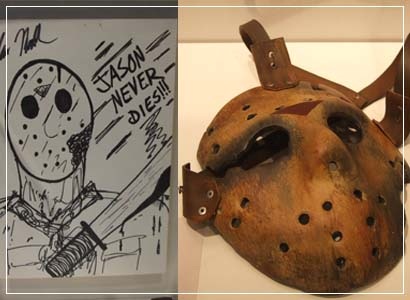 Máscara y caricatura autografiada por el actor que daba vida a Jason Voorhees en Viernes 13
