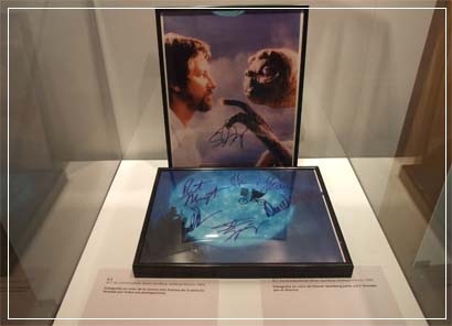 Lo cierto es que había variedad y aunque no eran todas de los ochenta, las había posteriores y bastante anteriores, eran destacables los scripts originales de King Kong, los autógrafos de una de las primeras versiones de Frankenstein, diversos artilugios de películas como Parque Jurásico, El Dentista, Juez Dredd, Desafío Total, La Máscara, una de las máscaras de El Planeta de los Simios así como una fotografía autografiada por Charlton Heston, maquetas de Batman o de Mars Attack entre muchos otros.