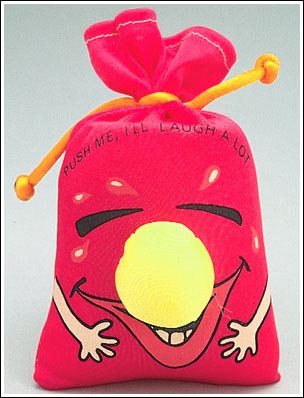 Era un saco relleno de un material muy blando y en su interior había un dispositivo que permitía que apretando la panza del saco o la nariz del mismo comenzasen a sonar unas risas histéricas muy pegadizas al principio y que causaban sensación hasta que acababan por aburrir hasta a las piedras.