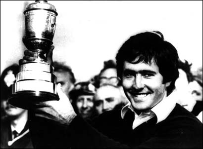 Seve levantando la copa de campeón del Open Británico