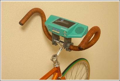 Eso no lo he conocido, pero lo que si he visto ha sido una radio para la bici, funcionaba sin pilas, llevaba una dinamo, como las luces.